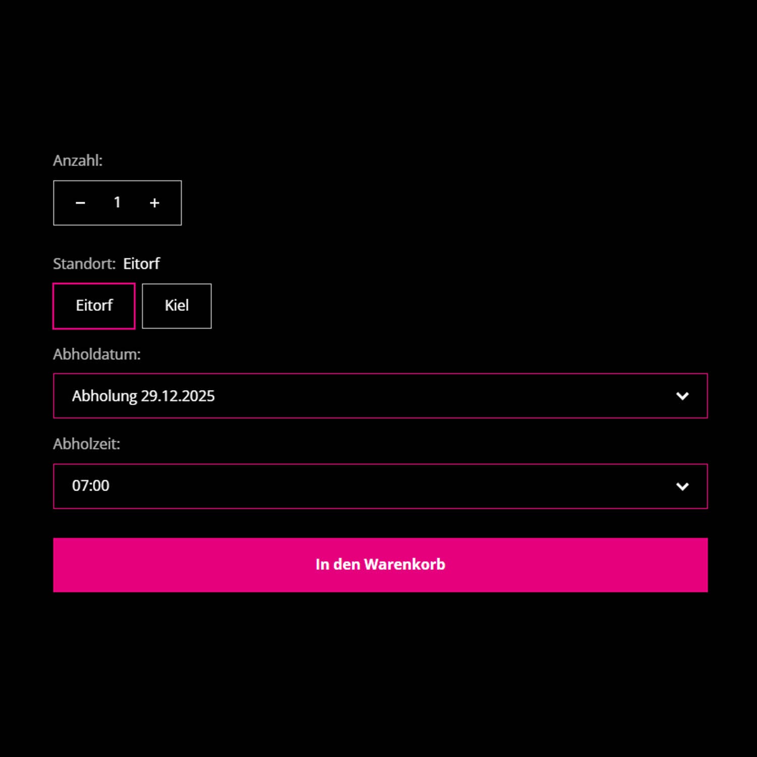 2. ANZAHL, ABHOLSTANDORT UND ZEITFENSTER WÄHLEN
